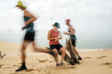 Th elements capsule is inspired by the elements that shape our world and places we run. I took inspiration from famous landmarks: Mojave desert, the Zambezi rivera and the Diablo winds of San Francisco. These consist of these elements and I've turned them into three vibrant prints across a men/women performance singlet and the M-Series, legionnaire and bucket hat. Each hat and singlet include a customised 'Fractel' woven patch I designed which again reflects each of the elements. It was fun learning and researching some different textures and patterns I could portray into prints.